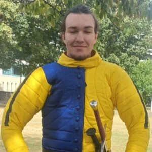 Serhii is a society squire and a Physics student. Being a local mad scientist and a medieval enthusiast, it was inevitable that he would join a HEMA society at some point. His interests cover single and double-handed swords of medieval and later periods. He deeply regrets that sword evolution didn’t go much further and we don’t have lightsabres yet. Outside of fencing, he is making historically-looking hats and wants to buy himself a full set of armour some day.